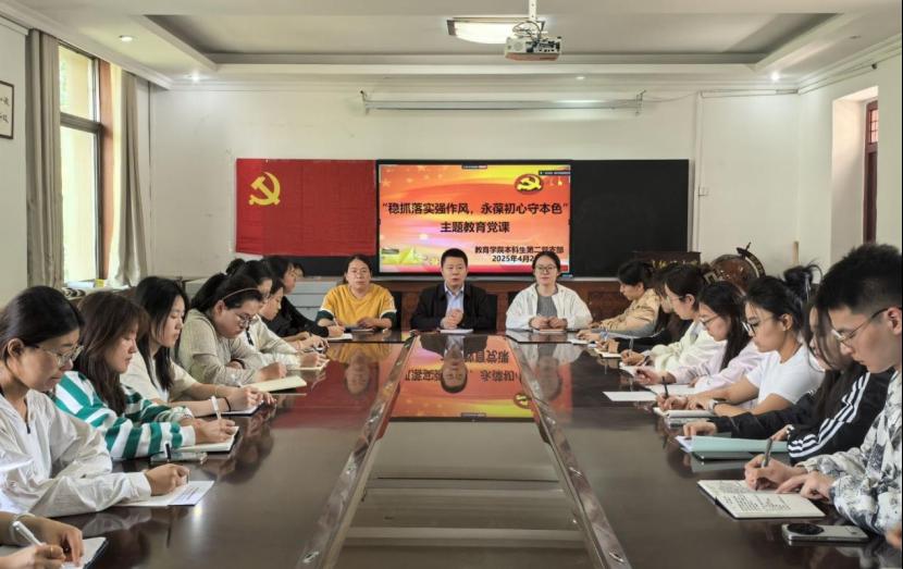 本科生第二党支部书记张东霞以“稳抓落实强作风,永葆初心守本色”为主题,为全体党员讲授专题党课。她强调,党的作风建设是党的建设的重要组成部分,关乎党的事业兴衰成败。我们党在长期的革命、建设和改革实践中,形成了一系列优良作风,如理论联系实际、密切联系群众、批评与自我批评等,这些作风是我们党的宝贵财富,必须代代相传、发扬光大。