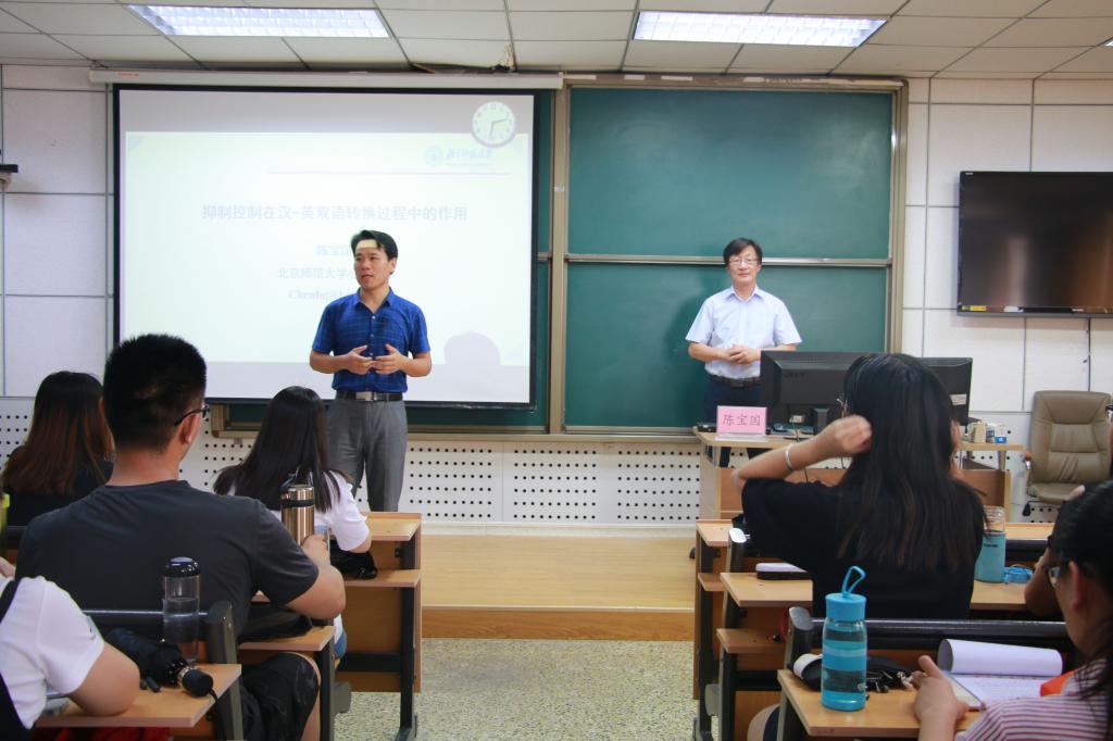6月9日下午,应我院邀请,北京师范大学博士生导师、教育部新世纪优秀人才、中国心理语言学专业委员会副会长陈宝国教授在8号教学楼415教室作了题为“抑制控制在汉-英双语转换过程中的作用”的心理学学术报告。报告由我院副院长何文广主持,我院部分研究生、本科生参加了本场报告。