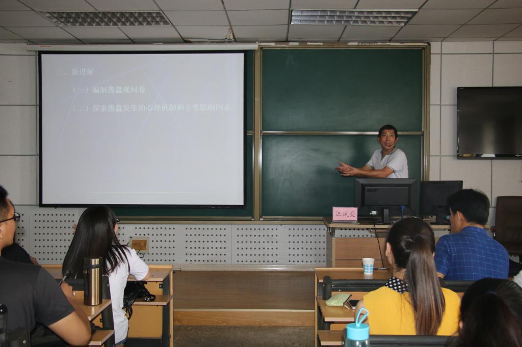 汪凤炎教授主讲“愚蠢的德才欠缺理论及其新发展”,旨在通过深层次的研究,减少愚蠢行为发生的概率。汪教授提到,文化自信是极其重要的一部分,但我们并不善于从中国文化里汲取营养,仍然缺乏情景性知识、独立思维和批判性思维,因此应努力掌握核心技术,提高文化自信。汪教授还提到个体道德品质的五个德目,分别是节制、责任、诚信、仁爱和公平公正,应该合理运用德育让心理学贴近民众的日常生活。报告在汪教授幽默风趣的讲解中结束,同学们都收获颇丰。