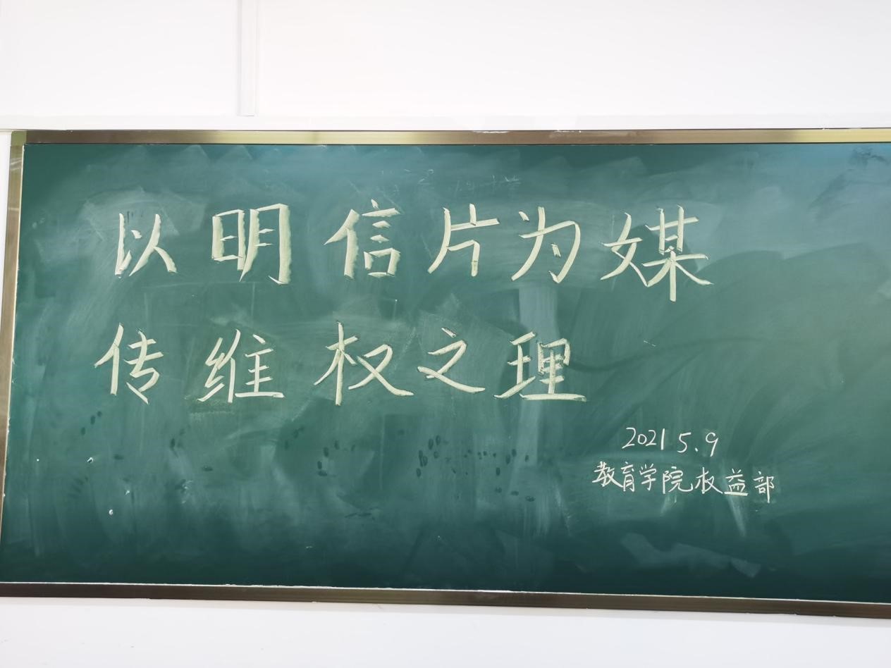 学生会权益部于院楼106举办了以“以明信片为媒,传维权之理”为主题的明信片制作大赛。本次比赛的评委有组织部部长郑晓萱、就业服务部部长李妍均、学习部部长解晓薇。