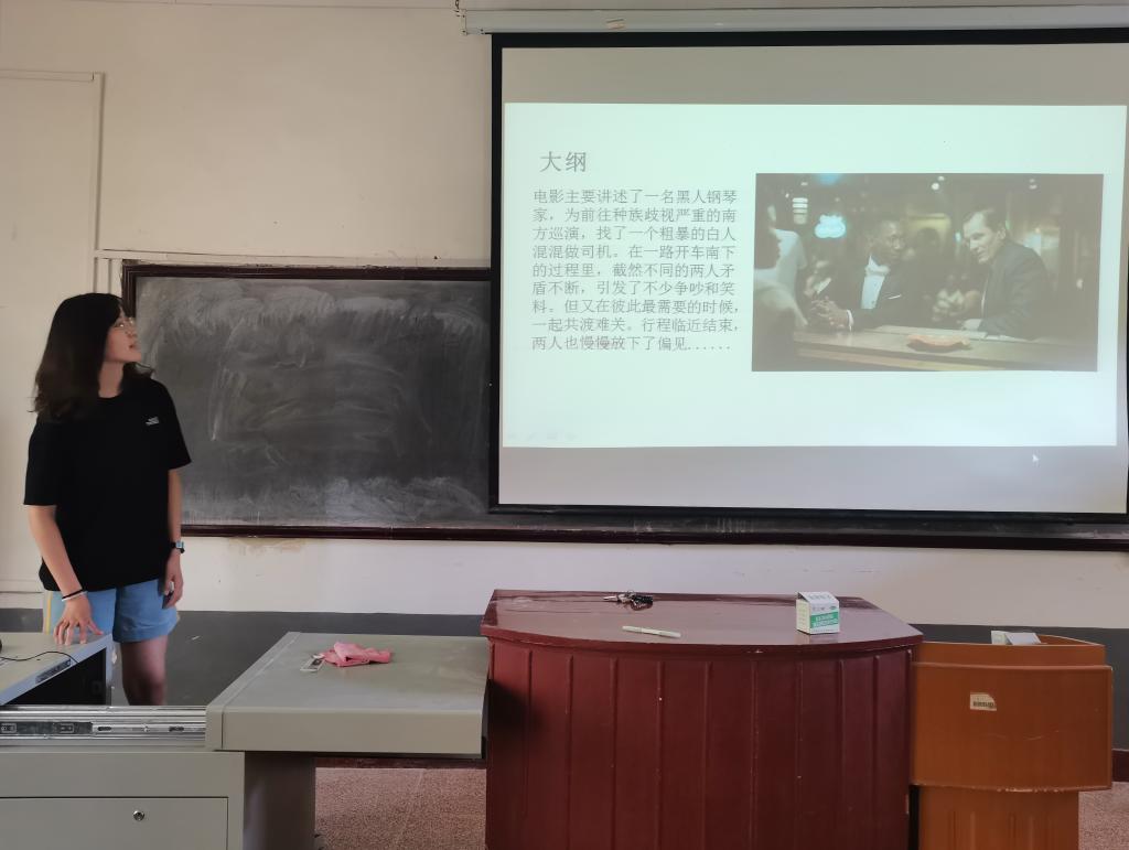 本次活动分为三个环节。第一个环节选手通过自己准备的PPT、视频及配乐等向大家分享自己有所感悟的影片,并从影片简介、片段分享、感悟分析等多方面进行展示,选手们的演讲感情充沛,语言清晰,表达流畅,获得了评委和观众的阵阵掌声。第二个环节评委对选手的演讲进行点评,评委们的点评既对选手们的优秀表现进行了肯定,又针对PPT播放、与观众的互动交流等细节提出了建议。第三个环节由工作人员进行统分并公布最终名单。最后,经过激烈的角逐,赵一凡荣获一等奖,闫泽、刘心仪、郭满春、夏伟婧荣获二等奖,李冰欣、侯雨青、李妍均、冀叶文锡荣获三等奖。