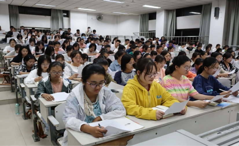 党委副书记孙超老师于综合楼701教室为新生讲授开学第一课,并见证全体新生举行入校承诺仪式。