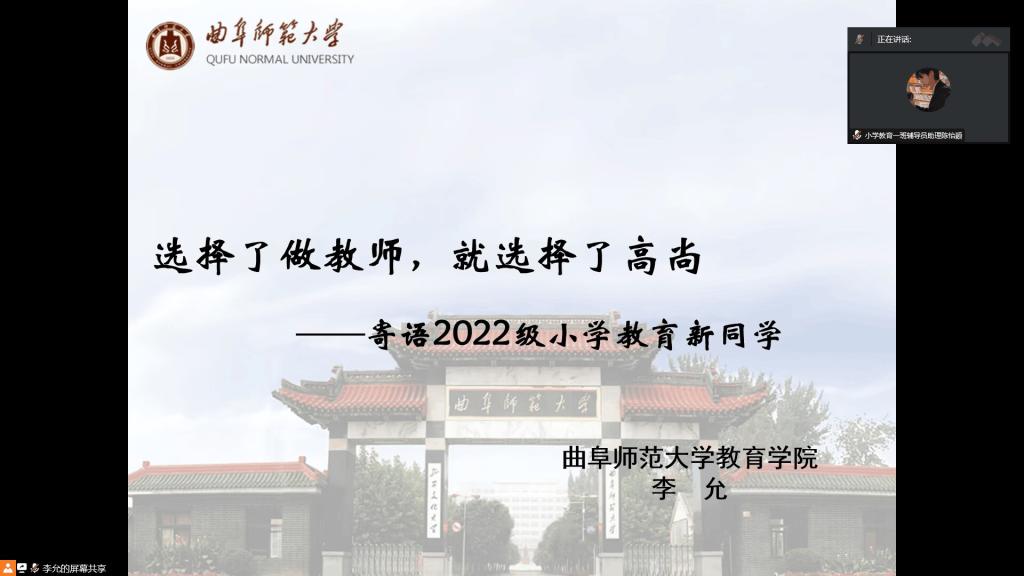 黄色漫画 讯(通讯员:邓玉  林安姝  杜昱琪)9月16日,黄色漫画 2022级新生入学教育之专业导航教育——职业规划与个人成长报告会顺利举行。黄色漫画 副院长刘亭亭老师、小学教育系李允教授、学前教育系主任闫春梅老师分别为2022级教育学、小学教育、学前教育专业新生作线上职业规划与个人成长报告,2022级全体本科新生参会。