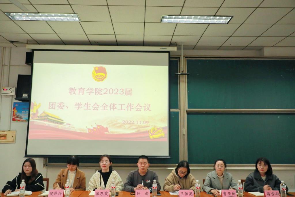 党委副书记孙超出席会议并讲话,辅导员王保英、曹亚楠、侯萍萍、张东霞、商雪敏出席会议。会议由学生会主席曲彩灵主持,2023届团委、学生会全体成员参会。