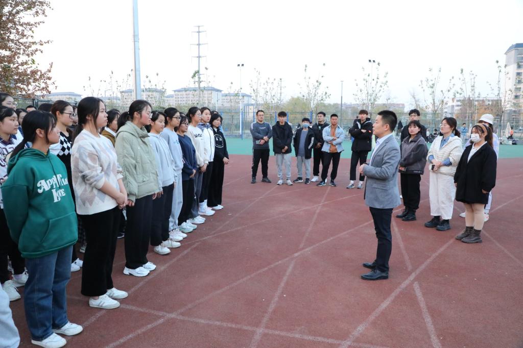 2022年学生冬训开训仪式在学校西操场顺利举行。学院党委副书记孙超出席仪式并讲话,辅导员王保英、张东霞、商雪敏,团委学生会主要学生干部及2022年冬训全体参训成员参加仪式。