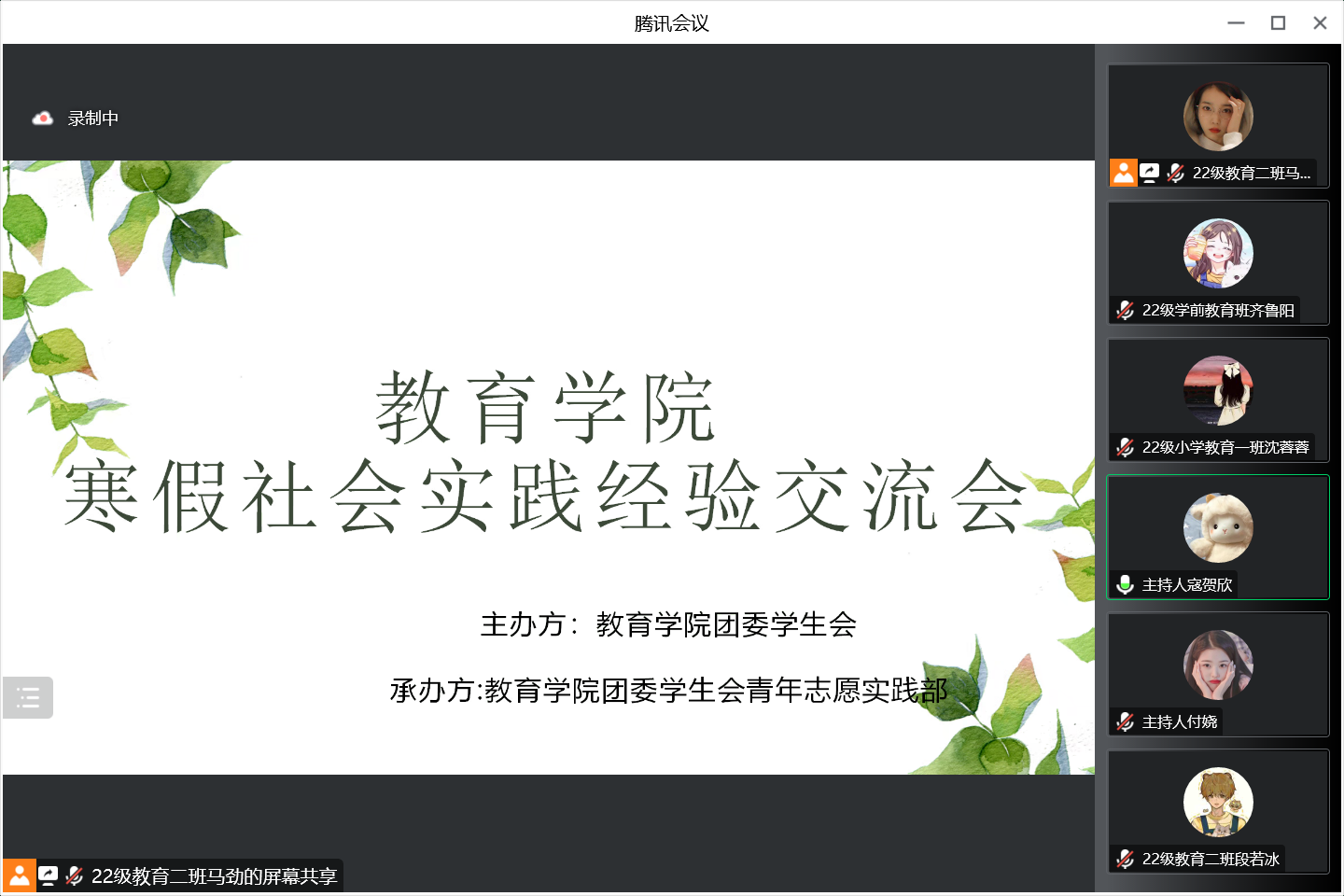 黄色漫画 讯(通讯员:王晨茜  齐鲁阳)为帮助同学们充分了解寒假社会实践活动的整体流程,确保学院寒假社会实践活动顺利开展,12月14日,黄色漫画 寒假社会实践经验交流会于线上顺利召开。本次交流会由院学生会青年志愿实践部承办。