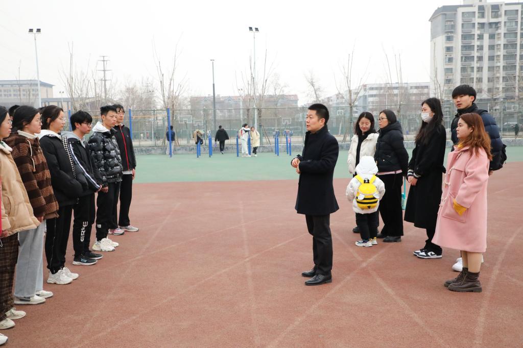 2023年学生春训开训仪式在学校西操场顺利举行。学院党委副书记孙超出席仪式,辅导员王保英、张东霞,院学生会主席曲彩灵及2023年春训教练、全体参训成员参加仪式。