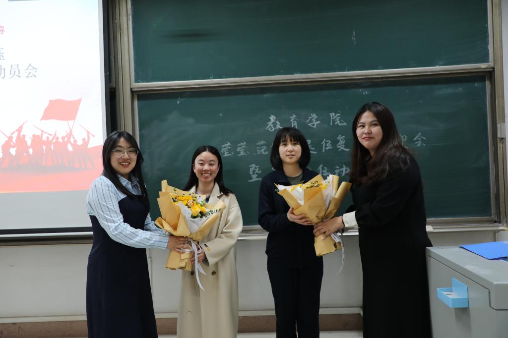 孙超代表学院全体师生对王莹莹、范培钰两名退伍复学同学表示热烈欢迎,并对她们在部队收获的成长与历练感到欣慰和骄傲。他指出,学院高度重视大学生征兵工作,希望通过这种具有仪式感的交流,切实提高同学们对大学生参军入伍重要意义的认识,促使同学们有所启发、有所感悟、有所收获;“青春须早为,奋斗正当时”,希望同学们能够结合自身实际,做好个人生涯规划,积极响应祖国号召,把爱国之心化作报国之行,携笔从戎,献身国防,为祖国的繁荣发展,为人民的幸福生活贡献自己的力量。