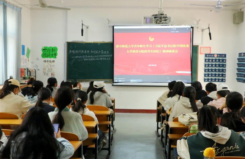 积极组织学生在106教室集中学习《习近平总书记给中国农业大学科技小院的学生回信》精神,并参加学校组织的座谈会。