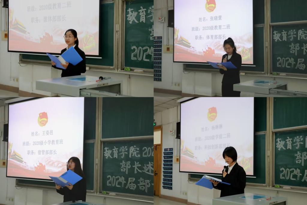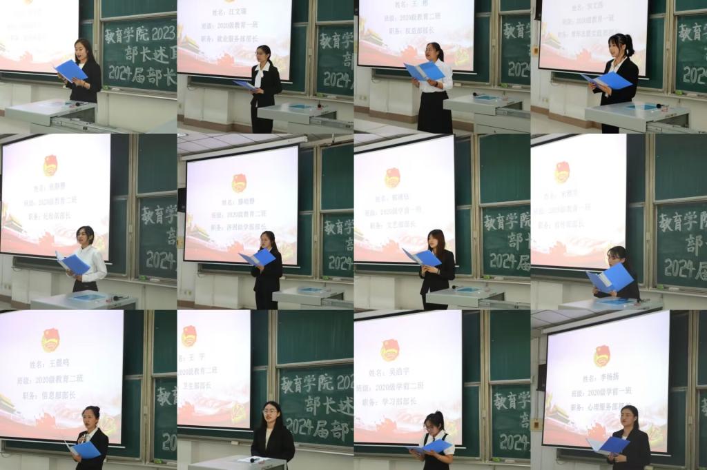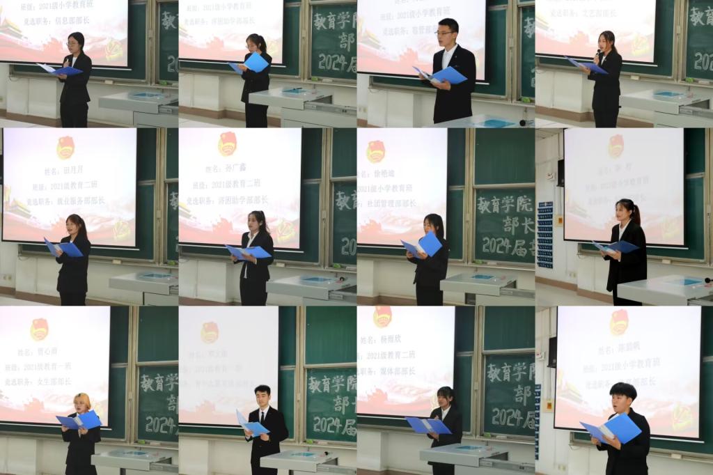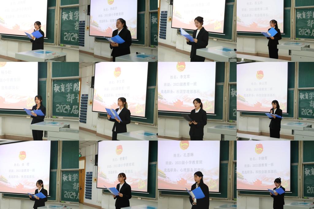 随后,2024届学生会各部门部长竞选人依次作竞选演讲和现场答辩,认真阐述各部门未来工作的谋划思路,总结过往的收获和成长。答辩结束后学生会全体成员对竞选人进行投票推荐。