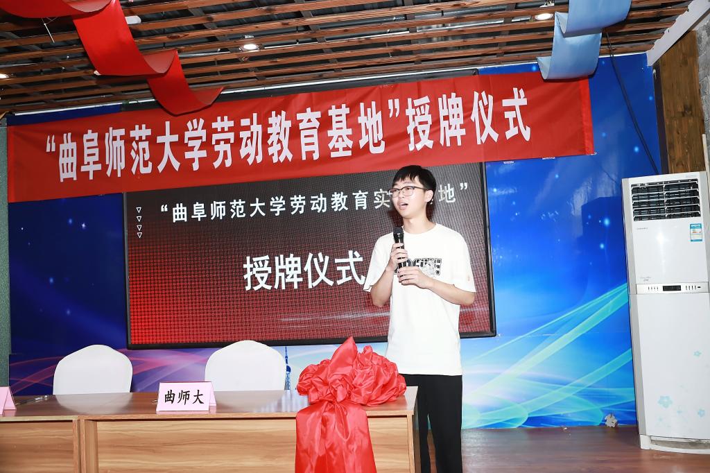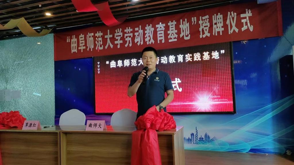 仪式上,孙超书记向连宇董事长授牌并讲话。他首先向以连宇女士为代表的乡村振兴带头人对新时代大学生深入社会和企业一线开展劳动教育实践的大力支持表示感谢,对劳动教育实践基地的建设发展以及学生开展劳动教育实践提出希望和要求。他指出,校企双方要加强合作,深化劳动教育内涵交流,依托实践基地建设促进学生成长成才,助力乡村振兴事业发展;同时希望以曲阜师大黄色漫画