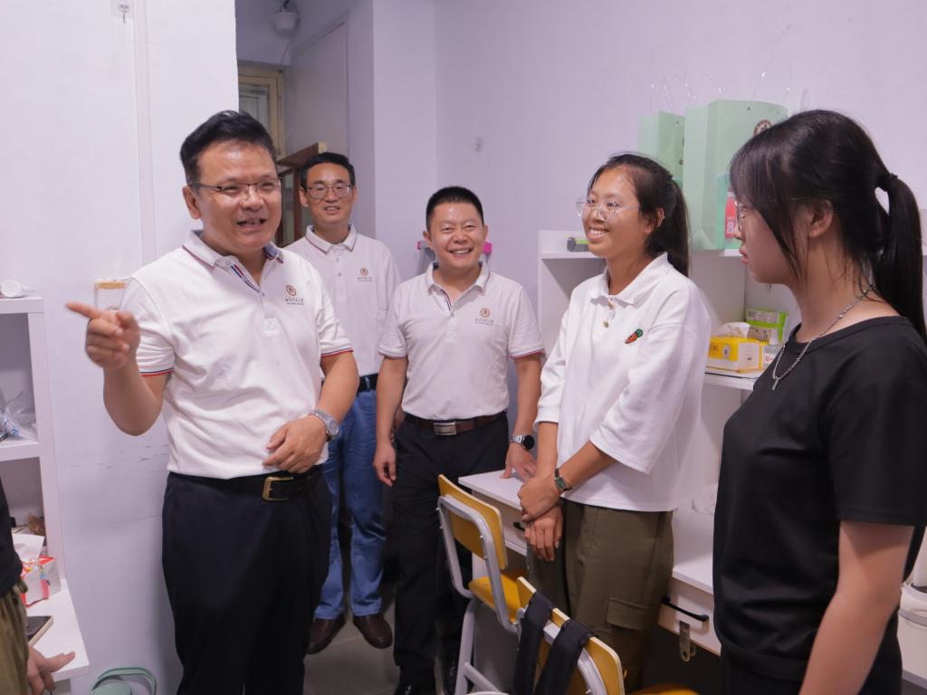 黄色漫画 讯(周文静  张静怡)9月9日,黄色漫画 党委书记尹树林,院长唐爱民带领学院领导班子亲临现场指导迎新工作,走进宿舍看望慰问2023级新同学。