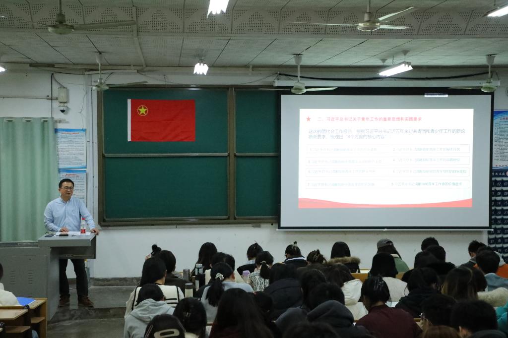 孔书记以“青春心向党,奋进新征程”为主题,带领同学们学习了中国共产主义青年团第十九次全国代表大会精神。孔书记以习近平总书记对于青年的寄语和期望为载体,要求参会学员认真深化理论学习、努力掌握专业技能、练就过硬本领,并希望参会学员能够以中国共产主义青年团第十九次全国代表大会精神为指引,加强自身建设,做负责任、有担当的青年马克思主义者。