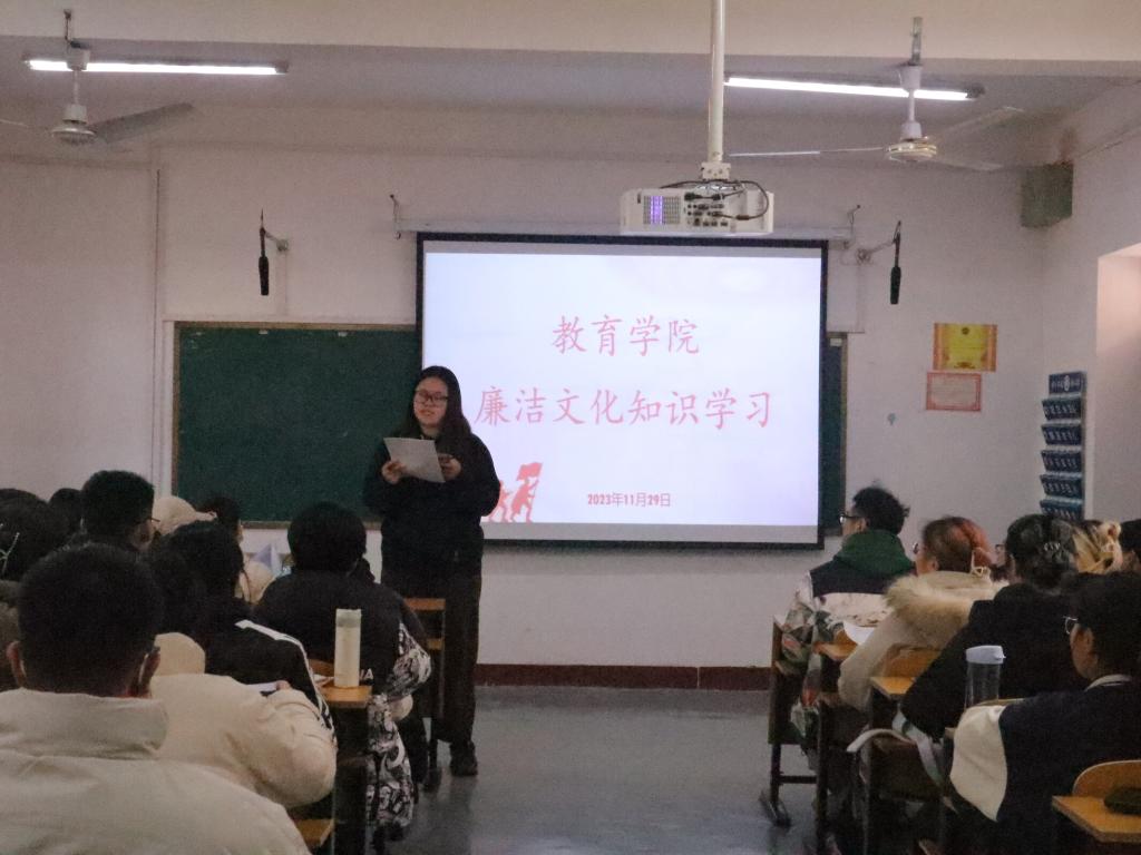 在106教室组织开展廉洁文化知识集中学习活动。学院团委学生会主席陈怡颖主持学习活动,并组织学院主要学生干部开展集中学习研讨。