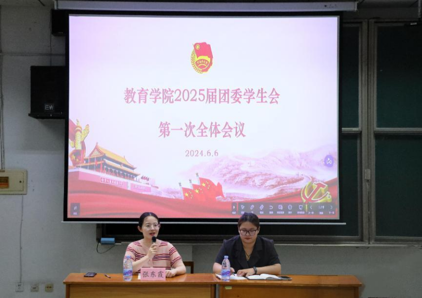 辅导员张东霞出席会议并讲话,2025届团委学生会全体成员参加会议。会议由学生会主席陈怡颖主持。