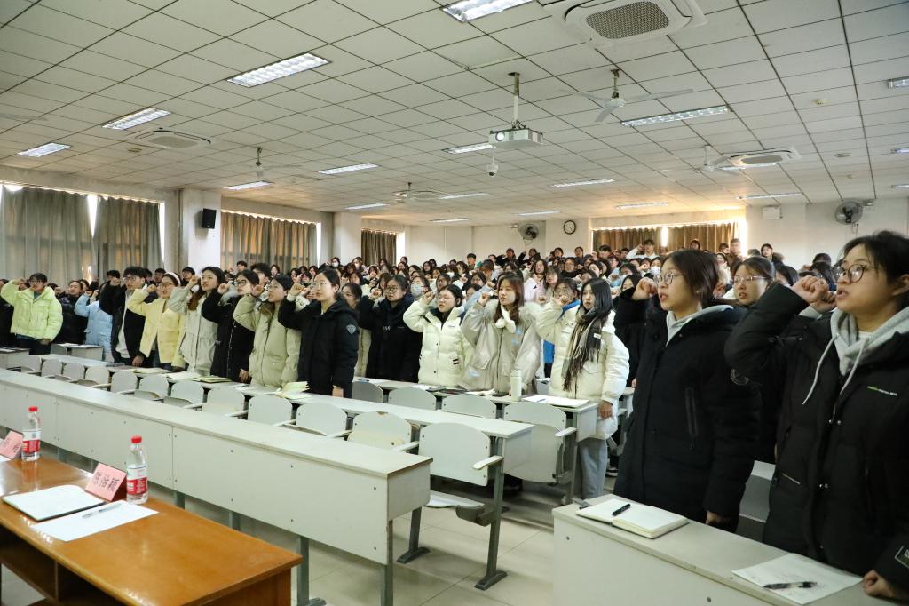 随后,学生会办公室副部长吴俊瑶带领团委学生会全体成员进行了考前诚信宣誓。学院全体学生干部举起右拳,庄严承诺服从考试安排、严守考试纪律,争创更好成绩。誓言铿锵有力,彰显出同学们对诚信考试的坚定决心。