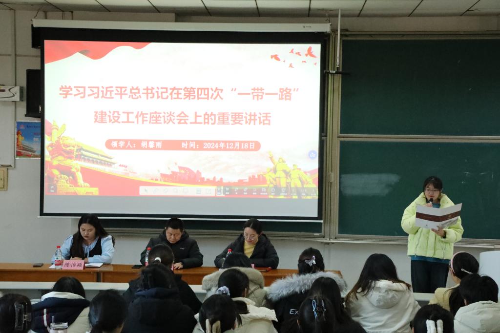 会上,学院团委组织部副部长胡馨雨带领全体成员学习了习近平总书记在第四次“一带一路”建设工作座谈会上的重要讲话,使同学们深刻认识到“一带一路”自倡议以来取得的丰硕成果,及其对构建人类命运共同体作出的突出贡献。这对于学生干部深刻理解国家战略、增强社会责任感、开拓国际视野具有重大指导意义。