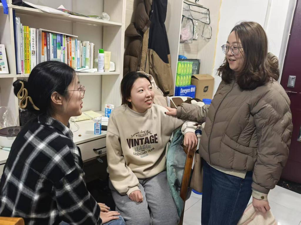 2月16日,学院辅导员深入学生宿舍,细致询问学生寒假生活、和返校适应情况等相关事宜,并叮嘱学生在日常生活中务必注意宿舍用电安全,及时调整作息以适应新学期学习节奏。辅导员们还与学生深入交流,现场解答同学们关于课程、就业及未来规划等疑问,并为学生们送上新学期的鼓励与祝福。