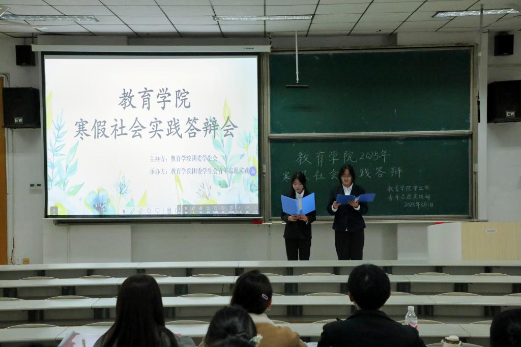 2025年寒假社会实践答辩会在综合楼101室顺利举行。本次答辩会特邀学院团委副书记刘欣颜、学生会原副主席金鹏飞、科创部原部长丰晓雪等具有丰富社会实践经验的朋辈导师担任评委。