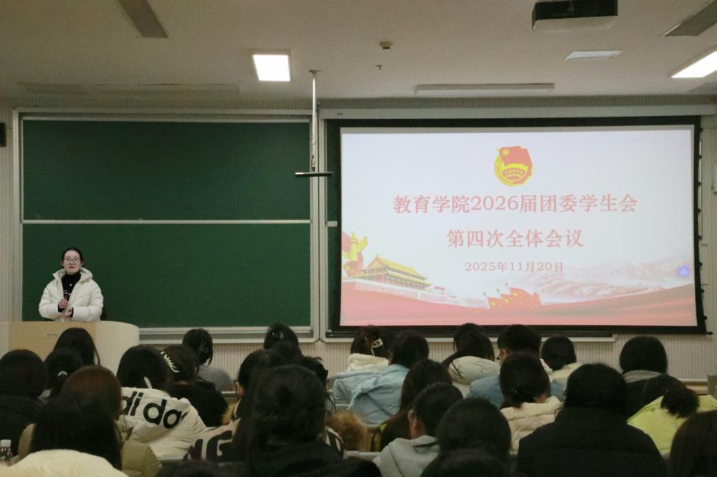 张东霞在讲话中对前期团委学生会各部门的工作成效表示肯定,并重点围绕迎新晚会的筹备进展、组织协调和细节落实进行了再动员、再部署。她强调,全体学生骨干要深刻领会党的二十届四中全会精神的核心要义,将理论学习成果切实转化为推动工作的强大动力,强化责任担当,提升服务意识,密切协作配合,确保晚会各项筹备工作高标准、高质量完成。