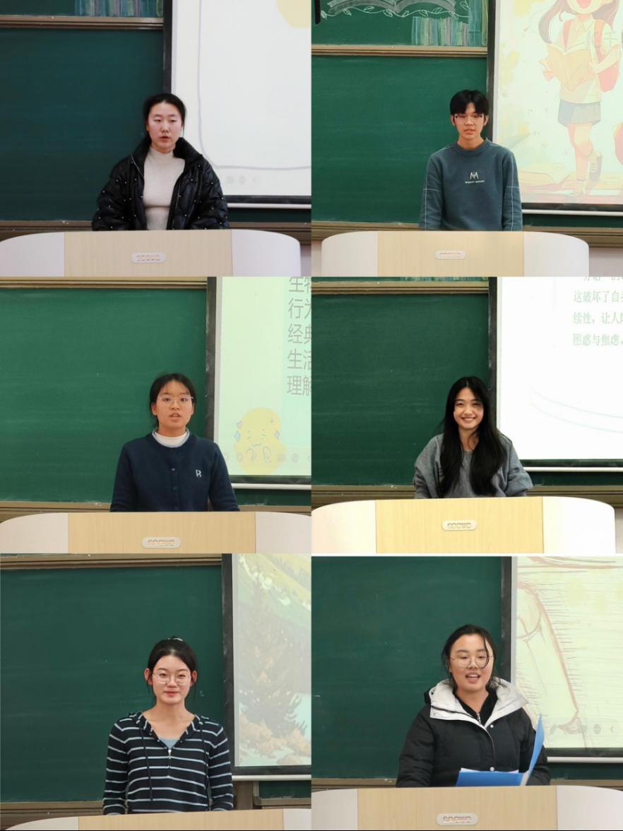 活动现场气氛热烈,参赛选手借助精心制作的PPT,用流畅的语言、清晰的逻辑与生动的案例展开读书分享,充分展现出对教育理论的深刻思考与实践感悟。展示结束后,选手们聚焦文本解读、育人理念落地性、教学场景适配度等维度开展自评,主动梳理分享亮点并提炼经验方法,彰显出教育学子勤于思考、善于总结、勇于反思的良好风貌。