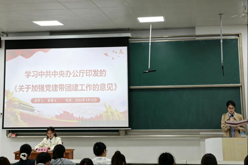 会议“第一议题”,团委组织部副部长常耀文带领全体成员集中学习中共中央办公厅印发的《关于加强党建带团建工作的意见》。学习坚持以习近平新时代中国特色社会主义思想为根本指导,深入贯彻落实习近平总书记关于青年工作的重要思想,紧扣党建带团建工作要求,重点围绕健全团干部与团员教育培训体系、提升青年思想政治引领实效等内容进行深入学习,进一步明晰了共青团作为党联系青年的桥梁纽带职责定位,为切实把党的领导贯穿团的工作全过程、引领广大青年坚定信念跟党走明确了实践方向。