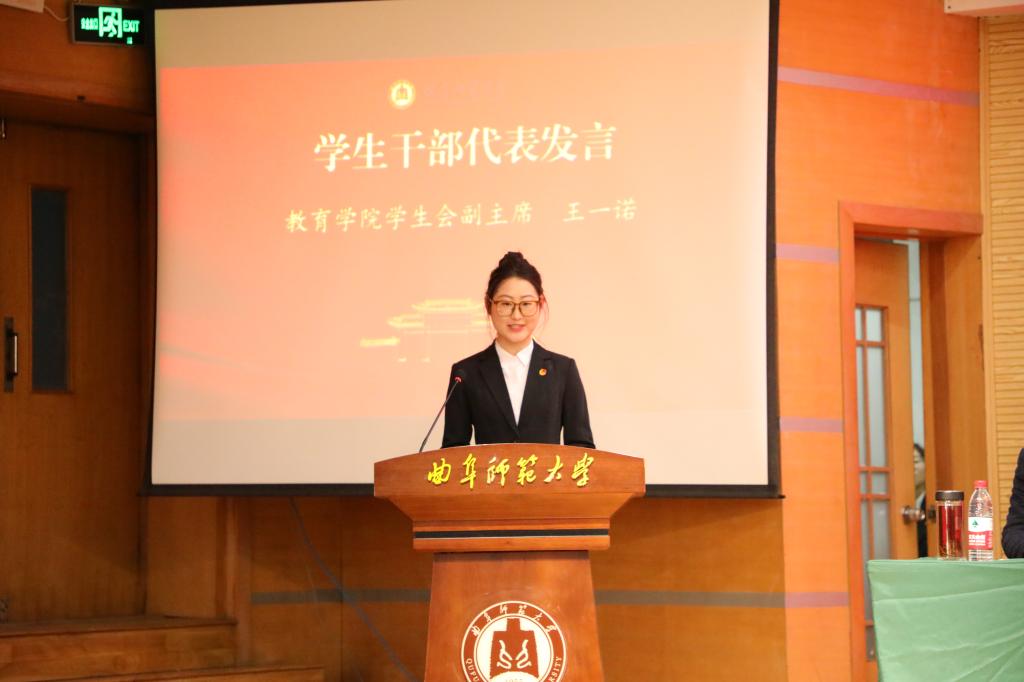 学生干部代表王一诺在发言中表示,将通过向优秀师长学习、参与班级管理案例研讨,深入学习先进工作方法,在思想碰撞中拓宽视野,在实践交流中提升组织协调能力,为更好服务同学、建设班集体贡献力量。