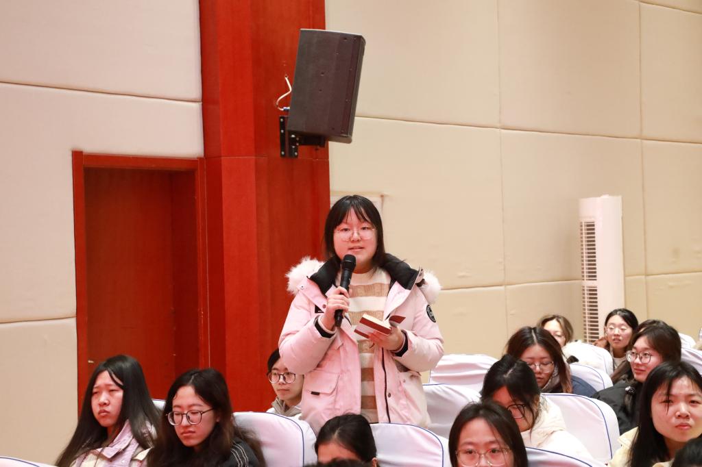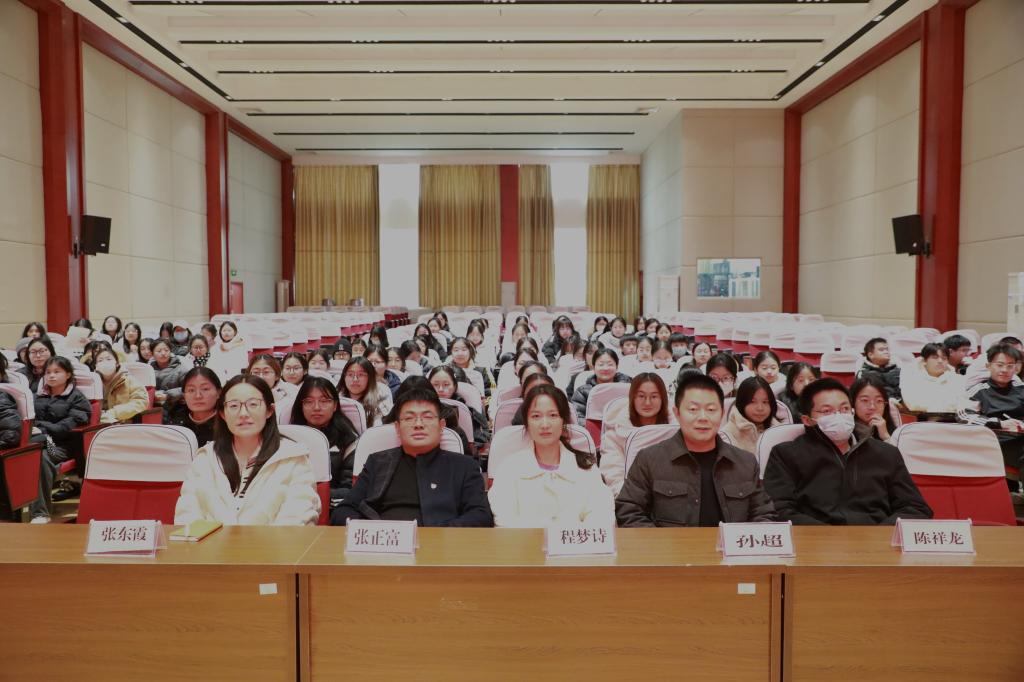 随后,师生们听取了龙腾小学校长张正富作的专题报告。报告中,张正富重点介绍了龙腾小学在特色课程开发、家校协同育人、教师专业成长等方面的发展特色。他叮嘱同学们,大学是真正学习的起点,要从当下做好人生规划,树立正确的恋爱观,将重心放在自我提升上。在面对明确的目标时,同学们需秉持坚持不懈的态度,同时珍惜同窗情谊,注重团结协作,在互助共进中奔赴理想。