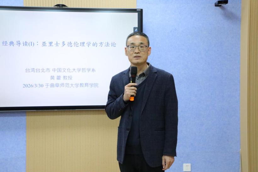特邀中国台湾中国文化大学哲学系黄藿教授在学院南楼123室为师生作题为《亚里士多德伦理学的方法论》的学术报告。教育科学研究院副院长徐瑞教授主持活动。